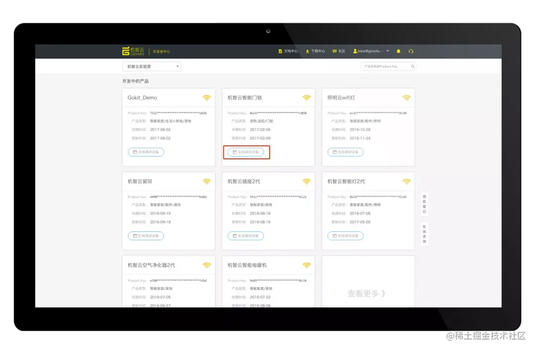 步骤1: 进入开发者中心,点击左上角选择栏,选择《机智云实验室》: