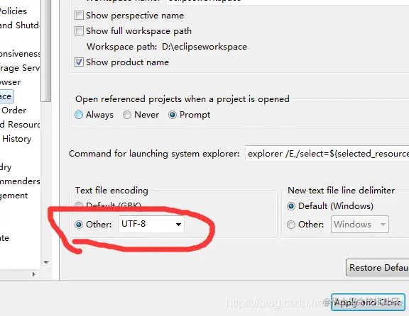 中文乱码 day4125 2022-02-21 315 阅读1分钟 中文乱码有很多,今天说的是,前端页面用浏览器直接打开没有乱码。放在eclipse中通过地址访问出现乱码。一般两种情况: 一、tomcat原因: 需要找到tomcat的安装包,找到config包下的service.xml,中 二、eclipse原因: 由于两个eclipse开发时编码格式不同修改方式 点击window-------preferences------------general----------------workspace下的画红地方改为utf-8就可以了 \