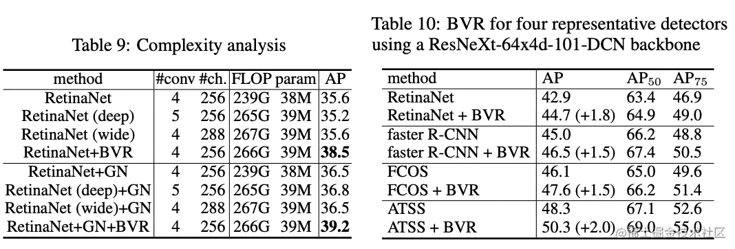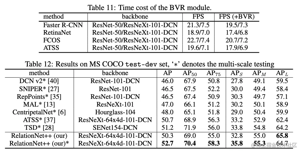 以BVR嵌入anchor-based方法为例,如图a所示,表示方式acnhor作为,其它表示方式中心点和角点作为,计算和间关联性权重,基于权重整合的特征来增强的特征。针对目标检测的场景,论文对权重计算进行了加速,分别为key sampling和shared location embedding,用于减少的数量以及权重计算量。除了嵌入到anchor-based方法外,BVR也可嵌入到多种形式的目标检测算法中。