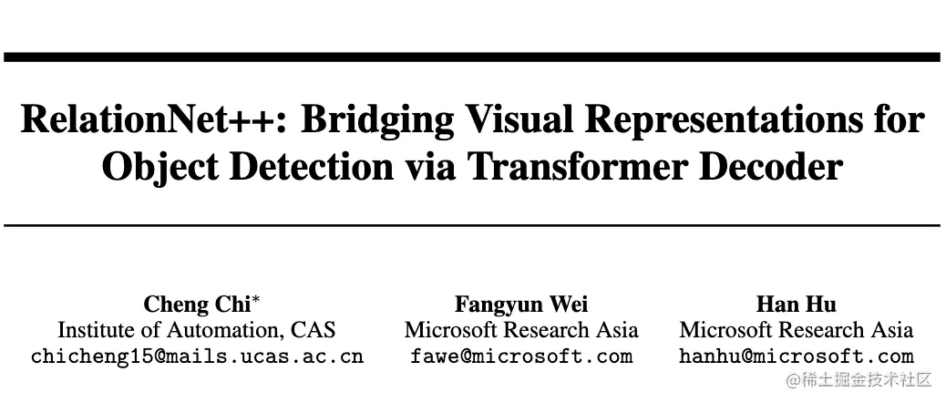 论文: RelationNet++: Bridging Visual Representations for Object Detection via Transformer Decoder