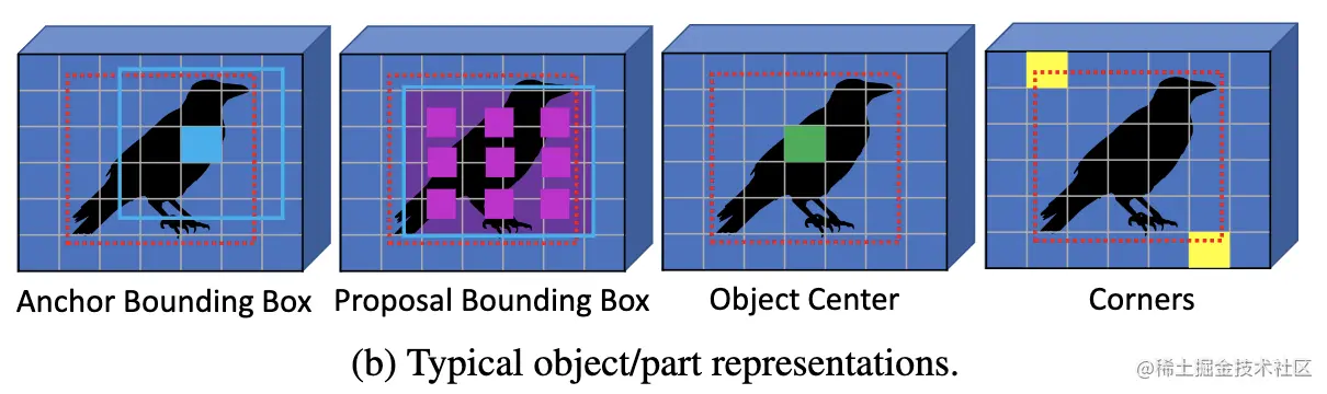 目标检测算法有很多种目标表示方法,如图b所示,有基于矩形框的也有基于关键点的。不同的表示方法使得检测算法在不同的方面表现更优,比如矩形框能更好的对齐标注信息,中心点更利于小目标识别,角点则能够更精细地定位。论文探讨能否将多种表示方式融合到单框架中,最终提出了基于注意力的解码模块BVR(bridging visual representations),该模块与Transformer的注意力机制类似,通过加权其它目标特征来增强当前目标特征,能够融合不同表示方式的异构特征。