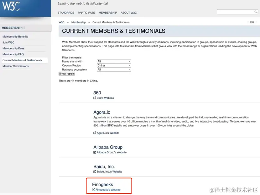 W3C官网展示中国成员信息