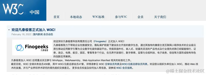 W3C欢迎凡泰极客加入