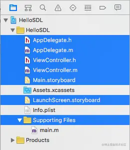 使用_File -> Add Files to Hello SDL...菜单项将SDL库项目添加到_HelloSDL。导航到下载或克隆的SDL文件夹,进入_Xcode-iOS/SDL/,然后选择_SDL.xcodeproj。