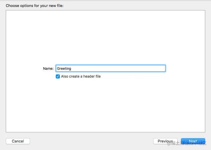 将文件命名为_Greeting_,保持勾选_同时创建一个头文件_的选项,然后点击_Next_。将该文件保存在_HelloCpp_文件夹中。