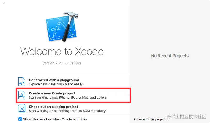 打开Xcode并选择_创建一个新的Xcode项目_。