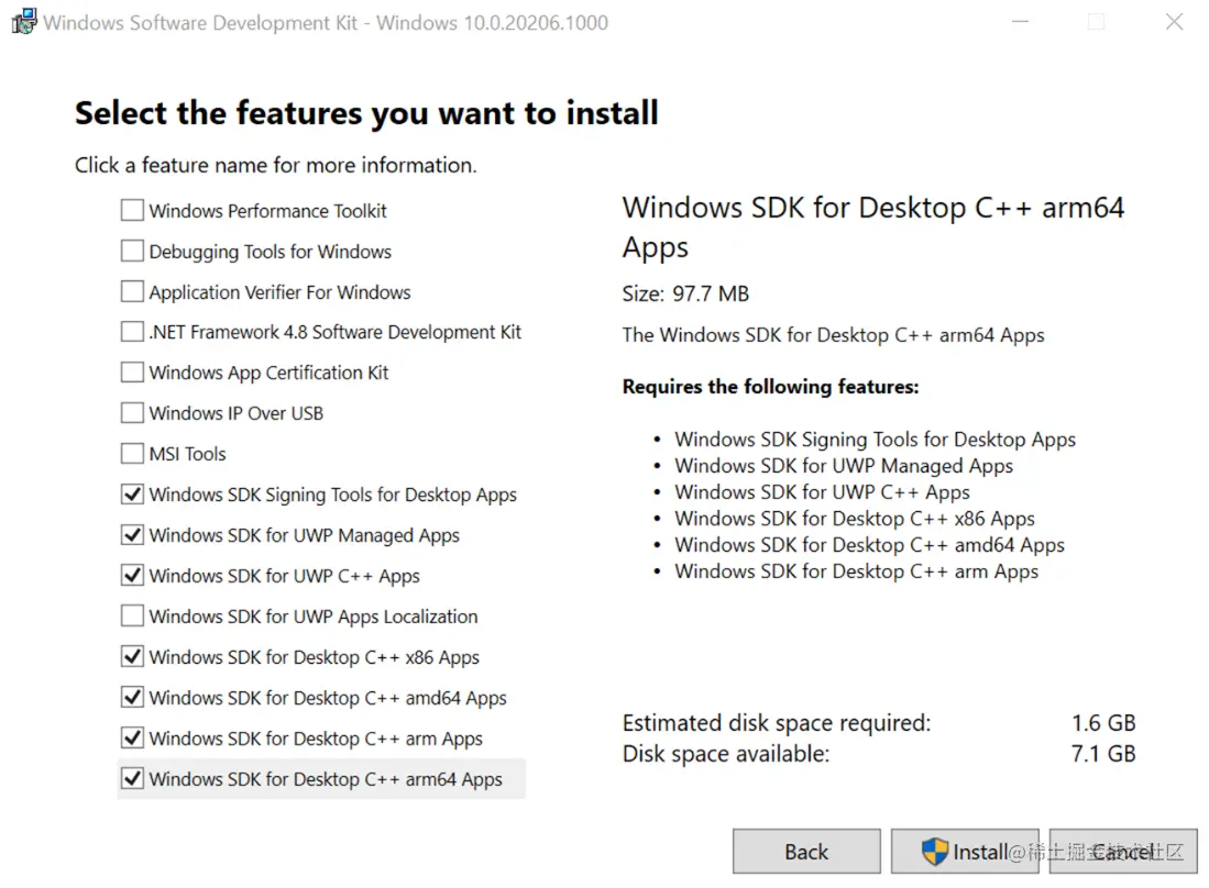 - 用于桌面C++ arm应用程序的Windows SDK(如果计划为arm构建)。