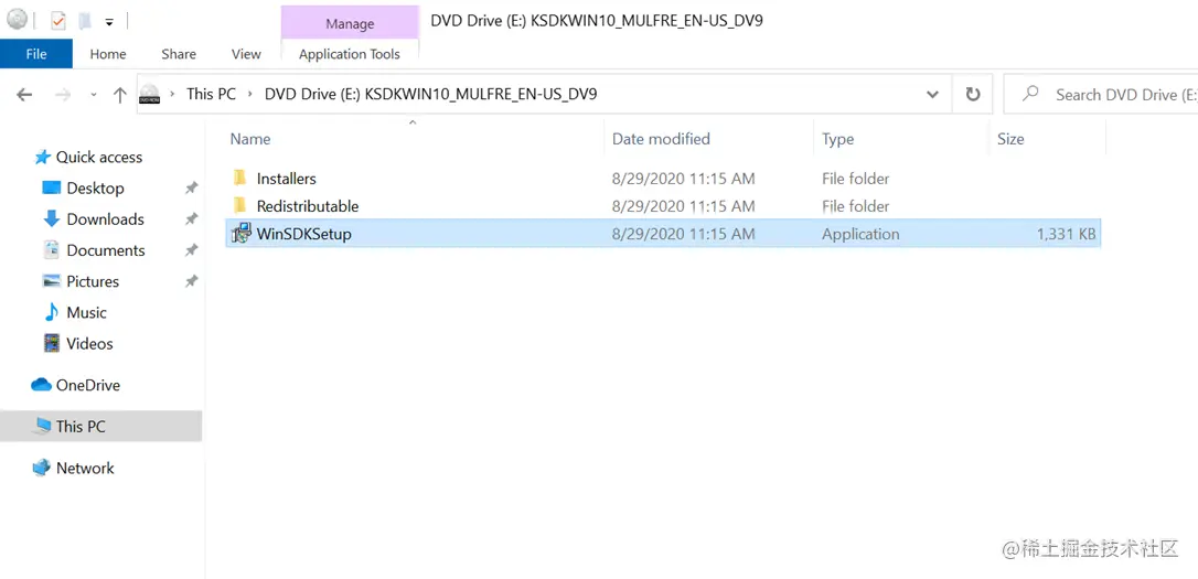 挂载.iso文件并运行WinSDKSetup.exe开始安装。