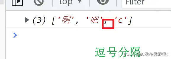 var str = '啊,吧,c' //字符串 var arr66 = str.split(",") //字符串转数组方法括号里面是 分隔符 console.log(arr66); //数组