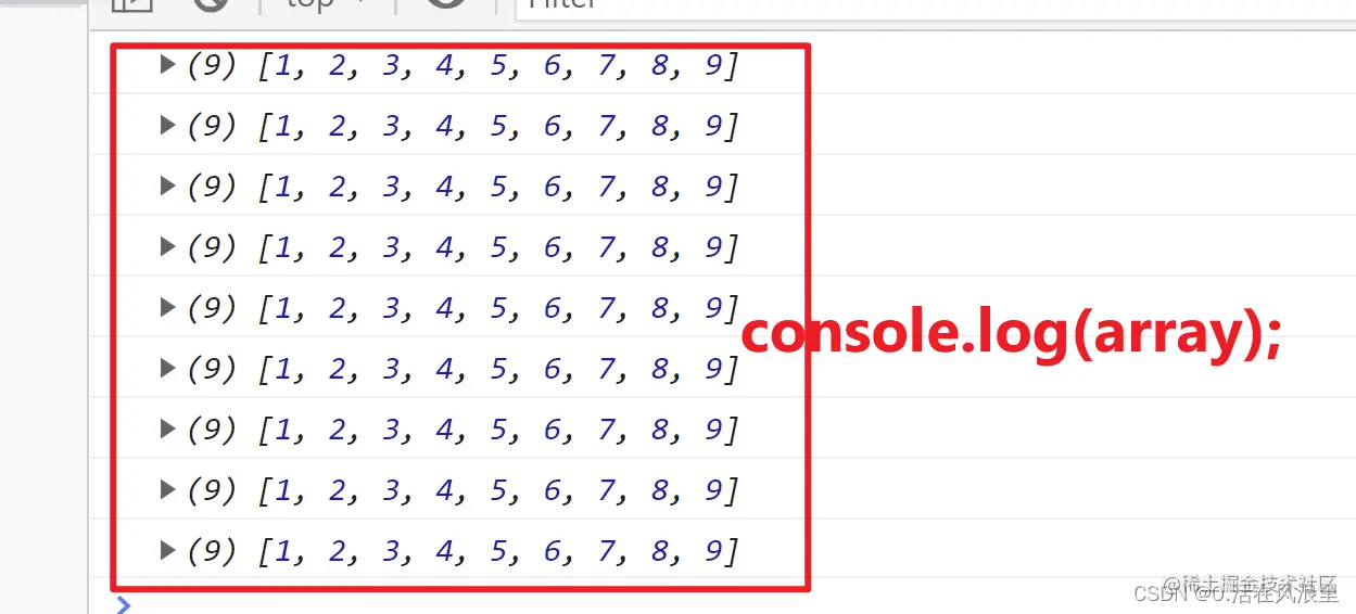 let arr12 = [1, 2, 3, 4, 5, 6, 7, 8, 9]; arr12.forEach((item, index, array) => { console.log(item); //每一项 console.log(index); //0 1 2 3 4 5 6 7 8 下标 console.log(array); //9个数组,每一数组有1 2 3 4 5 6 7 8 9 })