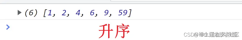 let arr6 = [1, 59, 6, 9, 2, 4]; //1,2,4,6,9,59 箭头函数可以省略return只有一行语句时 a-b升序 b-a倒叙 console.log(arr6.sort((a, b) => a - b));