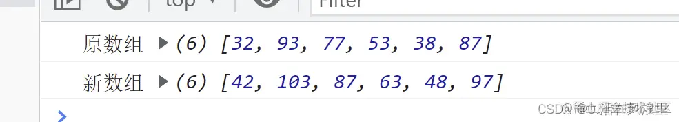 var list = [32, 93, 77, 53, 38, 87]; var res = list.map(function (item, index, array) { return item + 10; }); console.log("原数组", list); console.log("新数组", res);