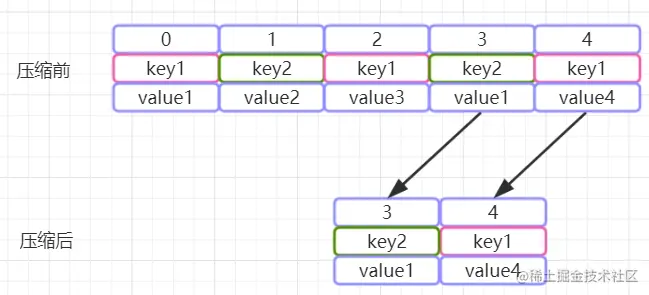 因此,可以开启kafka的日志压缩功能,服务端会在后台启动启动Cleaner线程池,定期将相同的key进行合并,只保留最新的value值