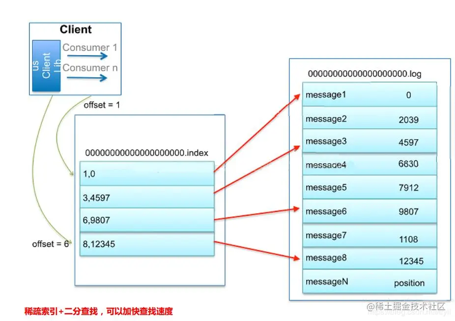 在Partition中通过offset查找message