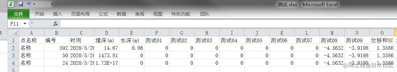 string[] excelHeader = new string[] {"点名称","编号", "时间", "埋深(m)", "水深(m)", "测试01", "测试02", "测试03", "测试04", "测试05", "测试06", "测试06", "测试07", "测试08", "测试09"};