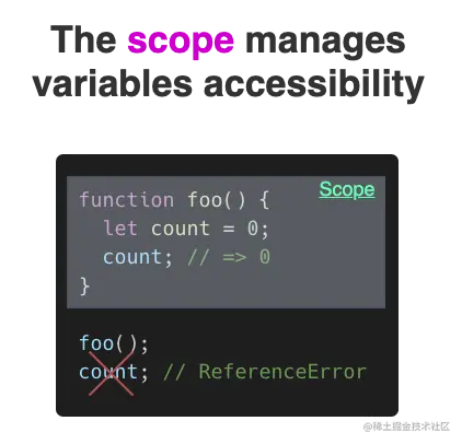 作用域就是变量与函数的可访问范围,即作用域控制着变量的**「可见性」和「生命周期」**
