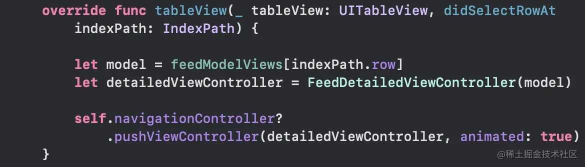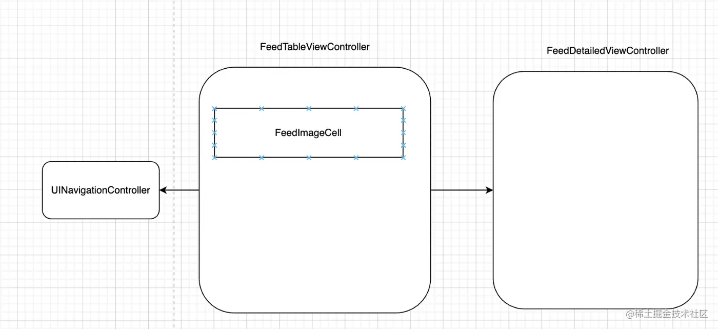 用户选择一个FeedImageCell ,并期望导航到一个FeedDetailedViewController 。
