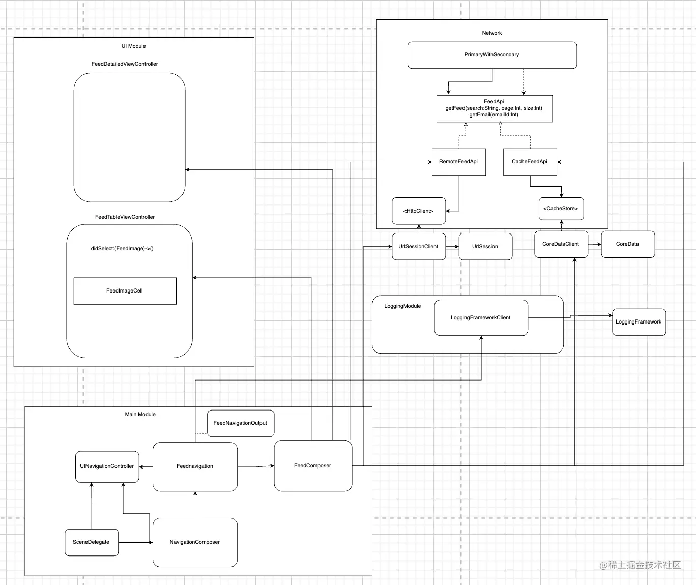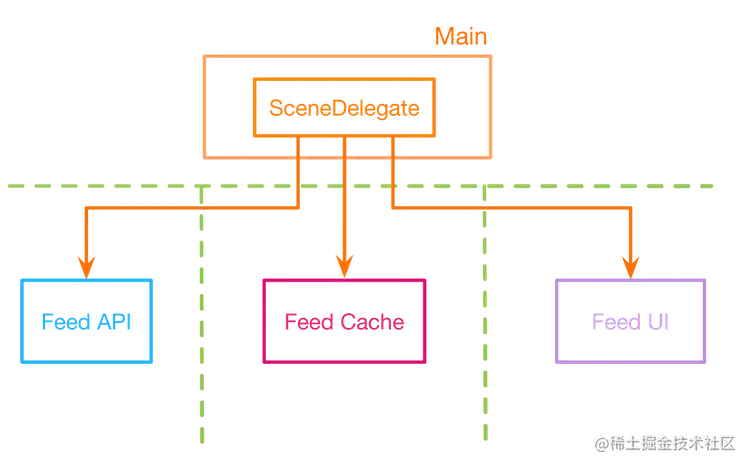 用我们的新方法,我们只需要重写FeedUI 模块,并在Main中的组成根部连接组件。所有的业务逻辑、网络、日志都将被重新使用。这就是模块化设计的力量。