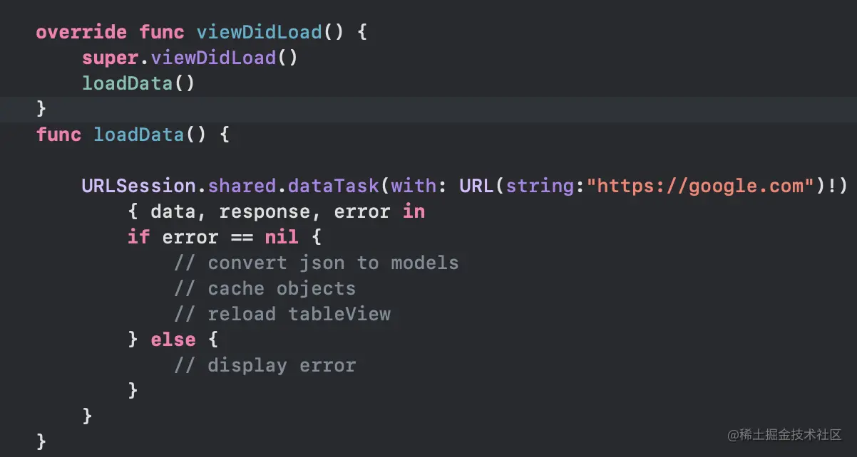 你使用URLSession ,在viewDidLoad ,如下图所示,加载数据。