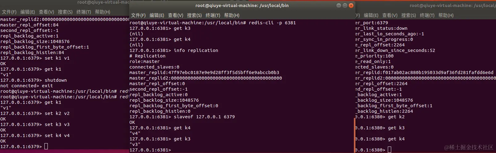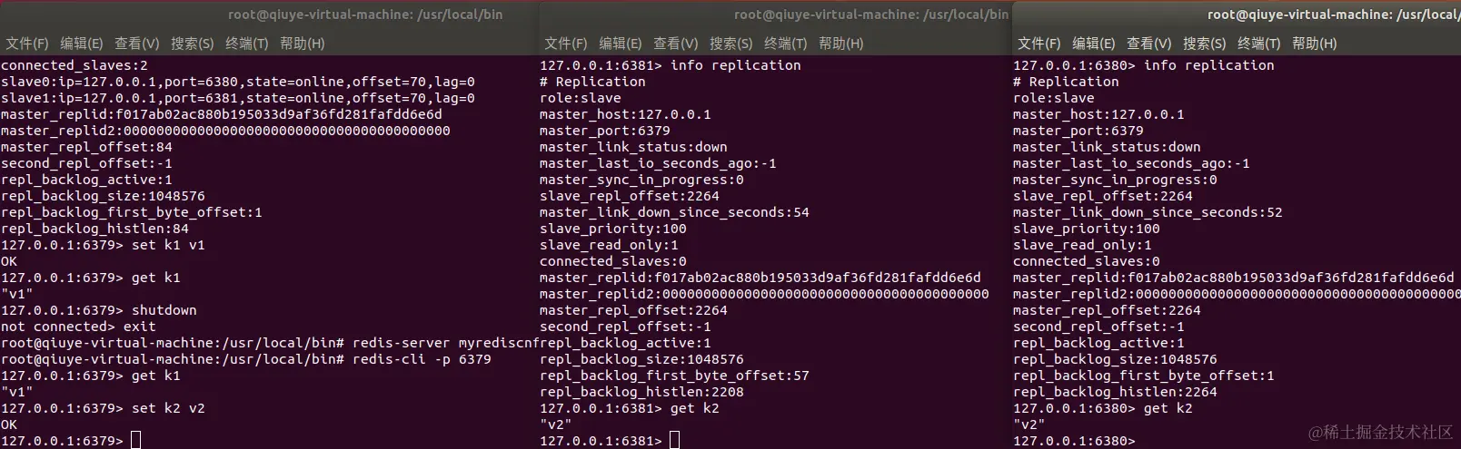 3.如果是从机重启了,通过命令设置的从机,在重启后会变成主机,获取不到原来的主机的数据,如果再次变为原来主机的从机,则会立刻获取主机的数据