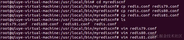 分别修改3个配置文件,然后修改对应的信息:端口,pid文件名,log文件名。dump.rdb文件名