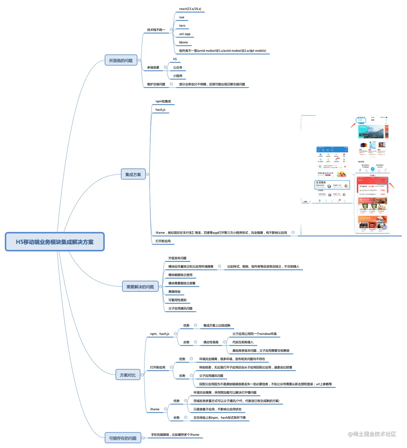 我们在h5端也有尝试iframe的集成方案,也是因为历史债务问题,涉及到两个跨地区的款对,不得已选择了iframe方案,不过在维护和快速集成方面确实带来了很大的便利。