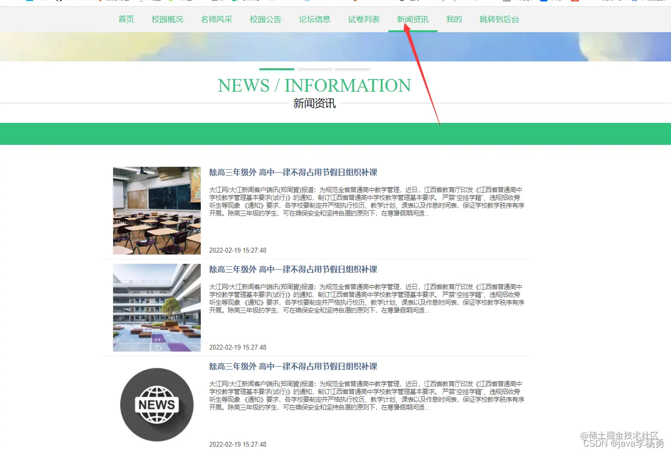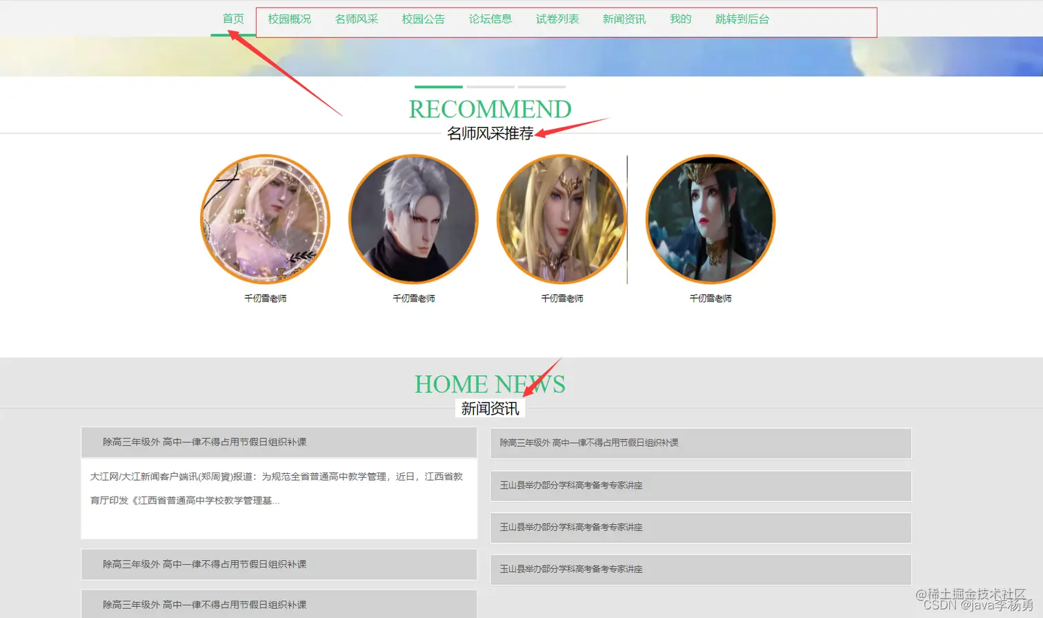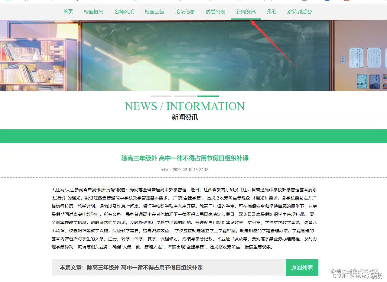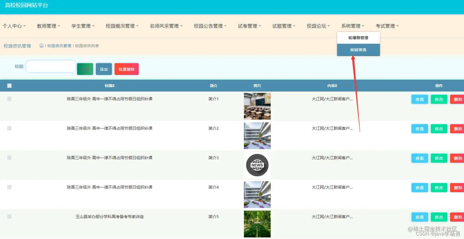 系统轮播图和校园资讯等信息: