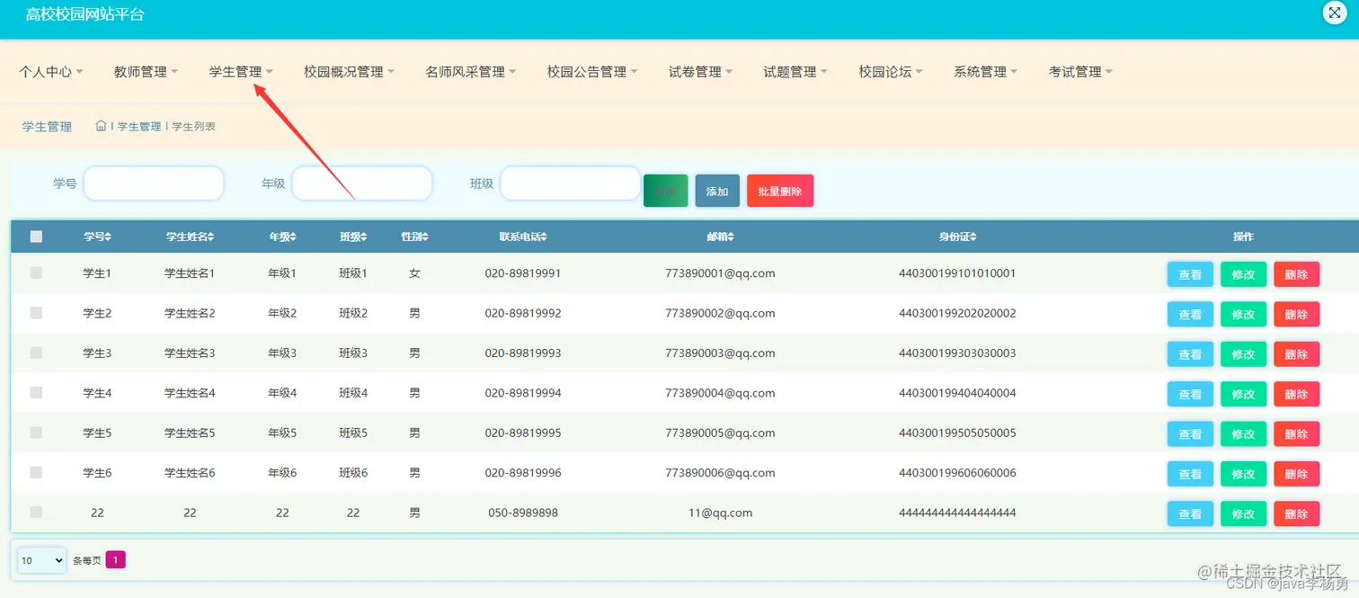 学生管理: