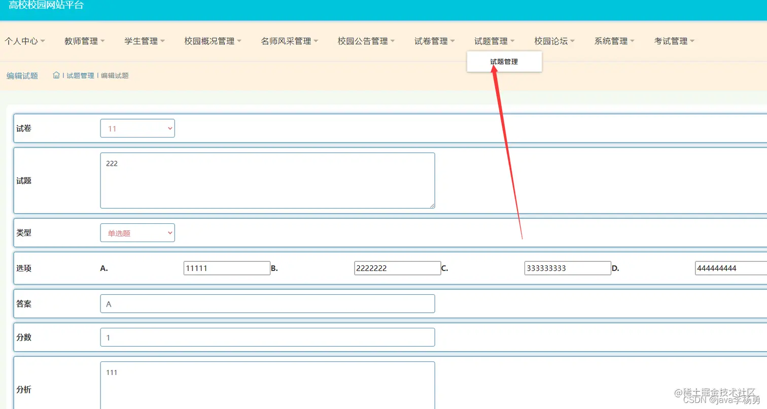 试卷试题管理: