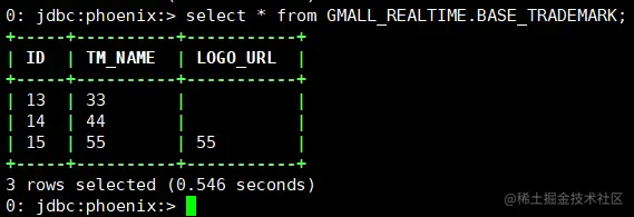 查看phoenix数据: