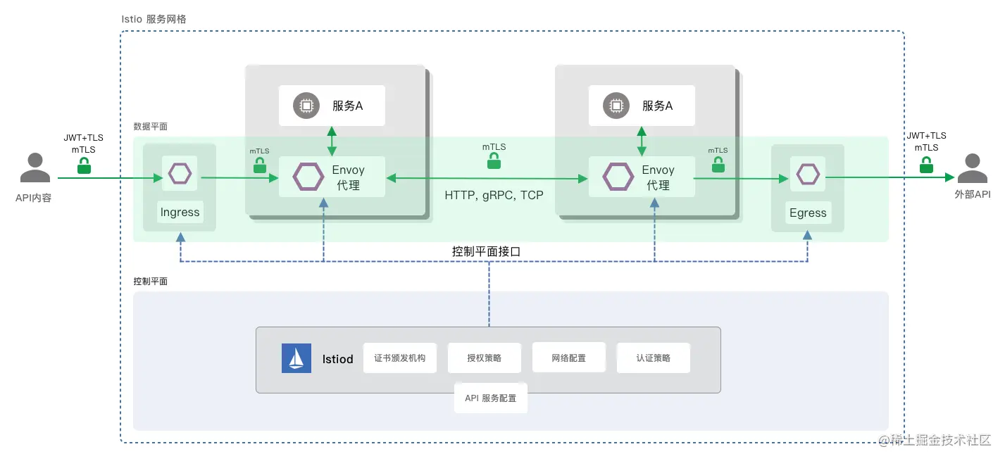 通信安全性主要通过对外部及集群内部通信进行mTLS加密来实现