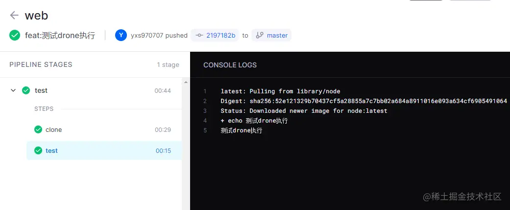 Drone 接收到消息之后便可以执行,这也就是持续部署的第一步。