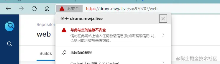下图是将 网关(Nginx) 中 Gitea 证书特意处理无效后进行的授权验证测试。 有兴趣的朋友可以自行测试。