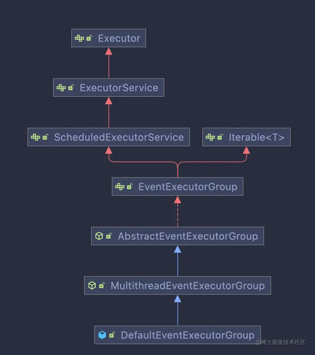 netty中EventExecutorGroup的默认实现叫做DefaultEventExecutorGroup,它的继承关系如下所示:
