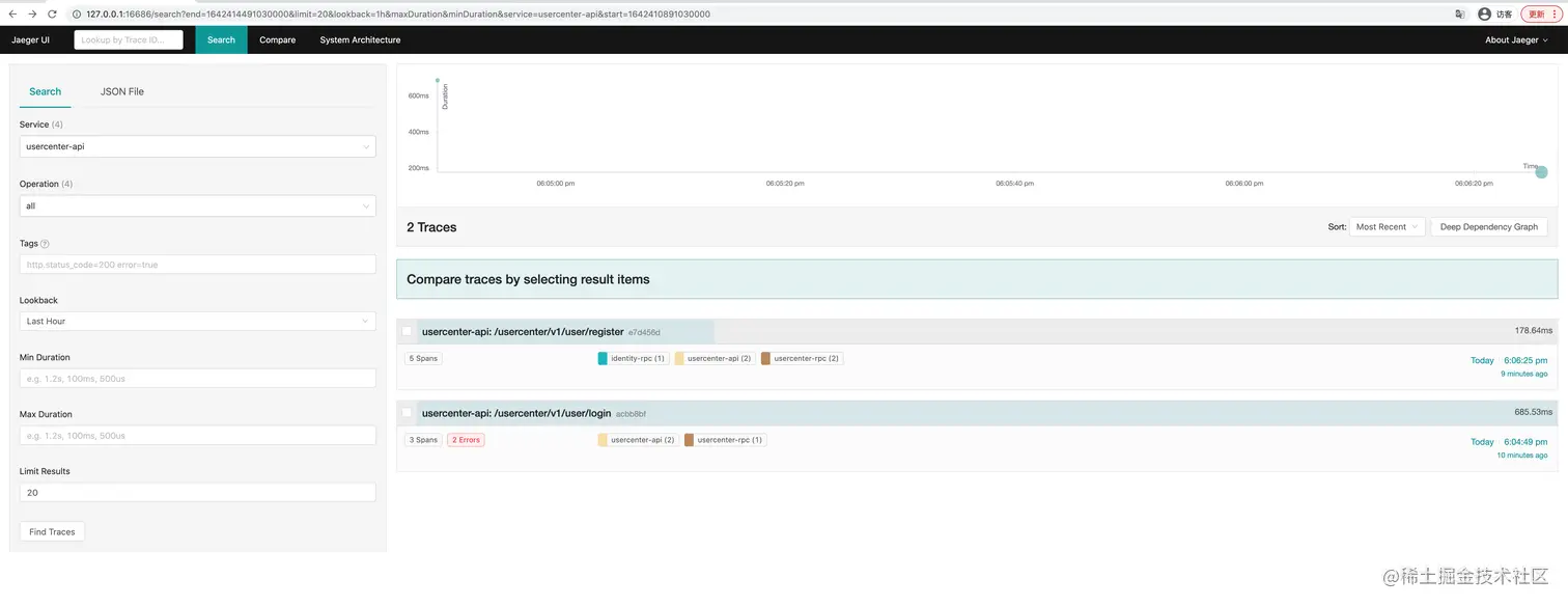 浏览器输入 http://127.0.0.1:16686/search即可查看