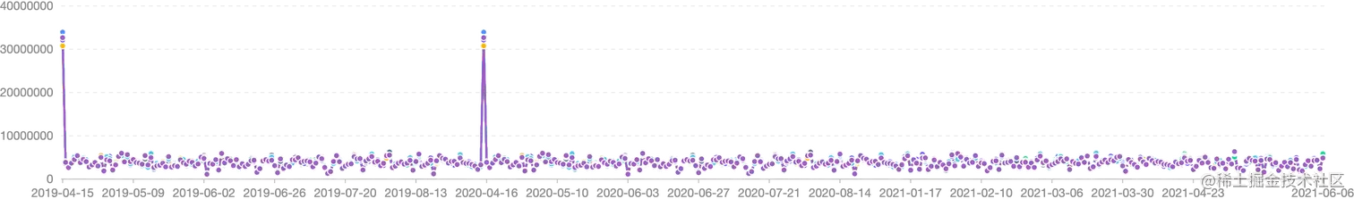 在数据埋点时,业务上总是趋向于越完整,数据量越充实,数据的价值就越高,所以往往会在一段时间内有很多的数据点需要展示,亦或是本来在一小时的时间段内采集的数据是一个合理的量,但是一旦遇到了用户拉取三十天的数据来进行展示的时候,就会出现大量数据点展示的需求。