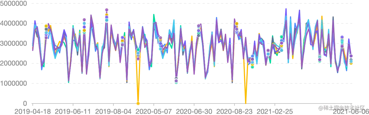 并不是说展示所有的数据点不好,但是因为浏览器/电脑性能限制,亦或是移动端显示的限制,前端应该有一种保护机制来对过量数据展示导致的UI性能卡顿有一定的预防和优化。