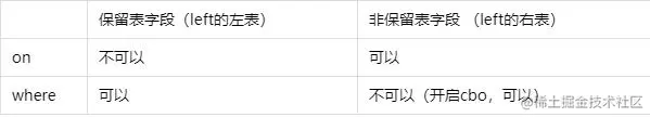 如果开启了 cbo,写在 where 可以 谓词下推, 写在 on 不可以 谓词下推