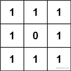 输入: grid = [[1,1,1],[1,0,1],[1,1,1]]