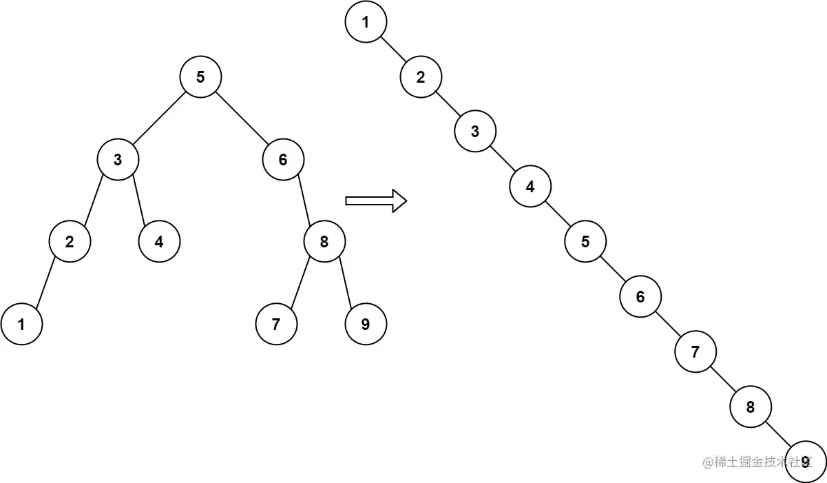 给你一棵二叉搜索树的 root ,请你 按中序遍历 将其重新排列为一棵递增顺序搜索树,使树中最左边的节点成为树的根节点,并且每个节点没有左子节点,只有一个右子节点。