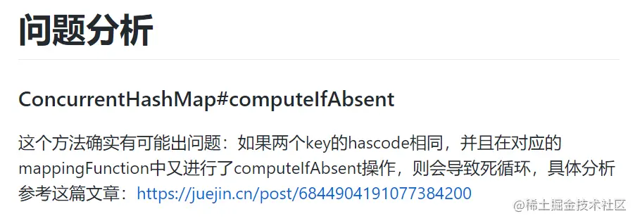 关于 ConcurrentHashMap 的 computeIfAbsent 我其实也专门写过文章的:《震惊!ConcurrentHashMap里面也有死循环,作者留下的“彩蛋”了解一下?》
