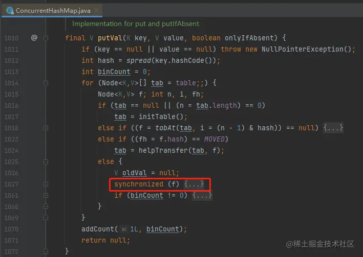 但是你仔细一看,如果不用 synchronized 的话,这个 map 也不行啊: