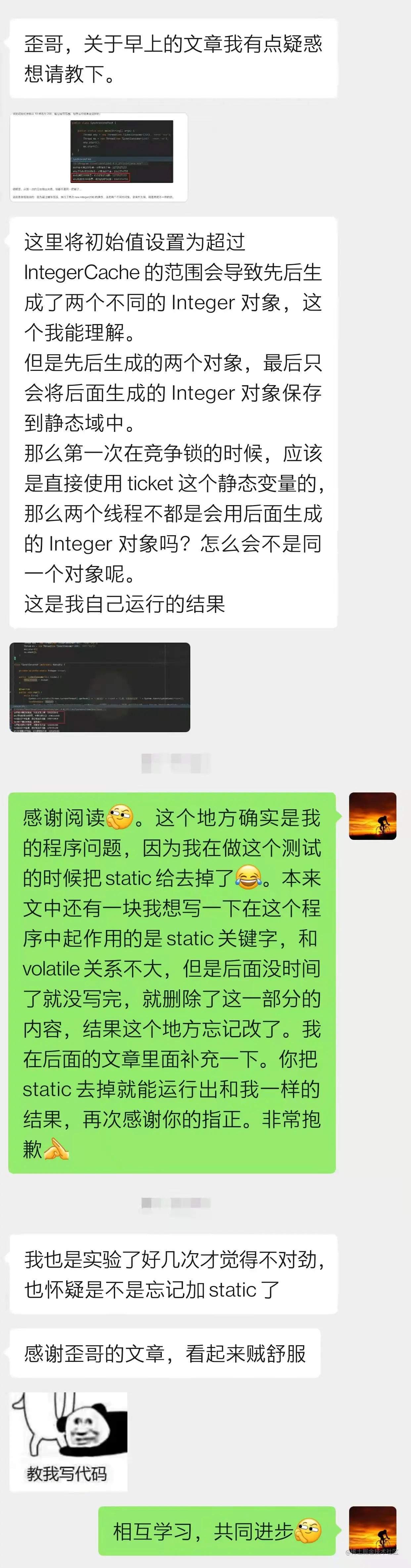 我真的特别的开心,因为真的有人把我的示例代码拿去跑了,且认真思考了,然后来和我讨论,帮我指正我写的不对的地方。