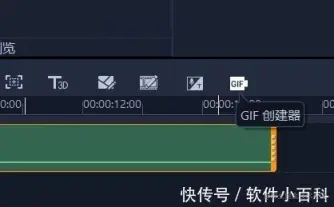 1.将视频素材拖入到时间轴后,我们可以在上方一行的工具中找到 GIF 创建器,点击打开就可以进行使用。