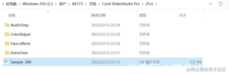 2.打开文件夹后,你可以看到该 GIF 文件已经被存放到会声会影软件的路径之下,供你自由进行使用。