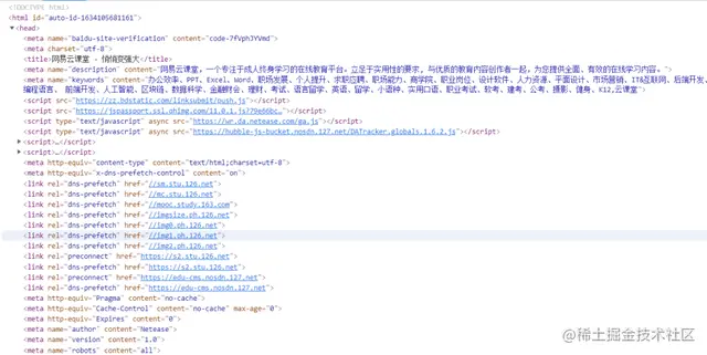 我们看到元素里有用于描述页面元数据的元素,还有一些元素涉及外部资源(如图片、CSS 样式等),此时浏览器会去获取这些外部资源。除此之外,我们还能看到元素中还包含着不少的