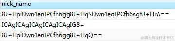 QQ昵称字段 特殊字符的数据库存储 李维山 2022-02-22 155 阅读1分钟 遇到像我这样有特殊字符的QQ昵称,存数据库的时候也是心累...... 设置字符集:utf8mb4 排序规则:utf8mb4_general_ci 存储和读取的时候使用base64位加密、解密字符串: 加密:base64_encode() 解密:base64_decode()