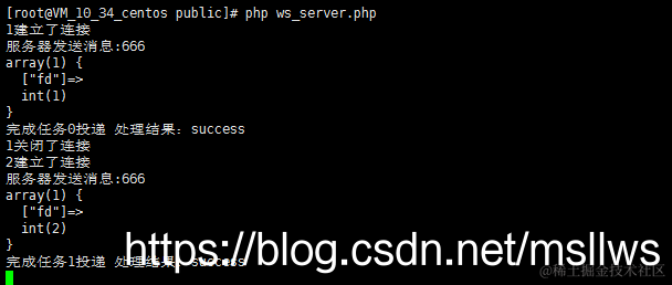 前后刷新了两次页面,WebSocket服务器监听结果: