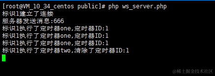 echo "标识{$request->fd}执行了定时器one,定时器ID:{$timer_id}\n";