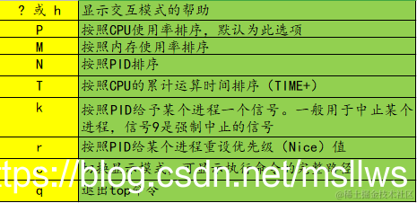 - top命令在交互模式下(进程列表)可以执行的命令: